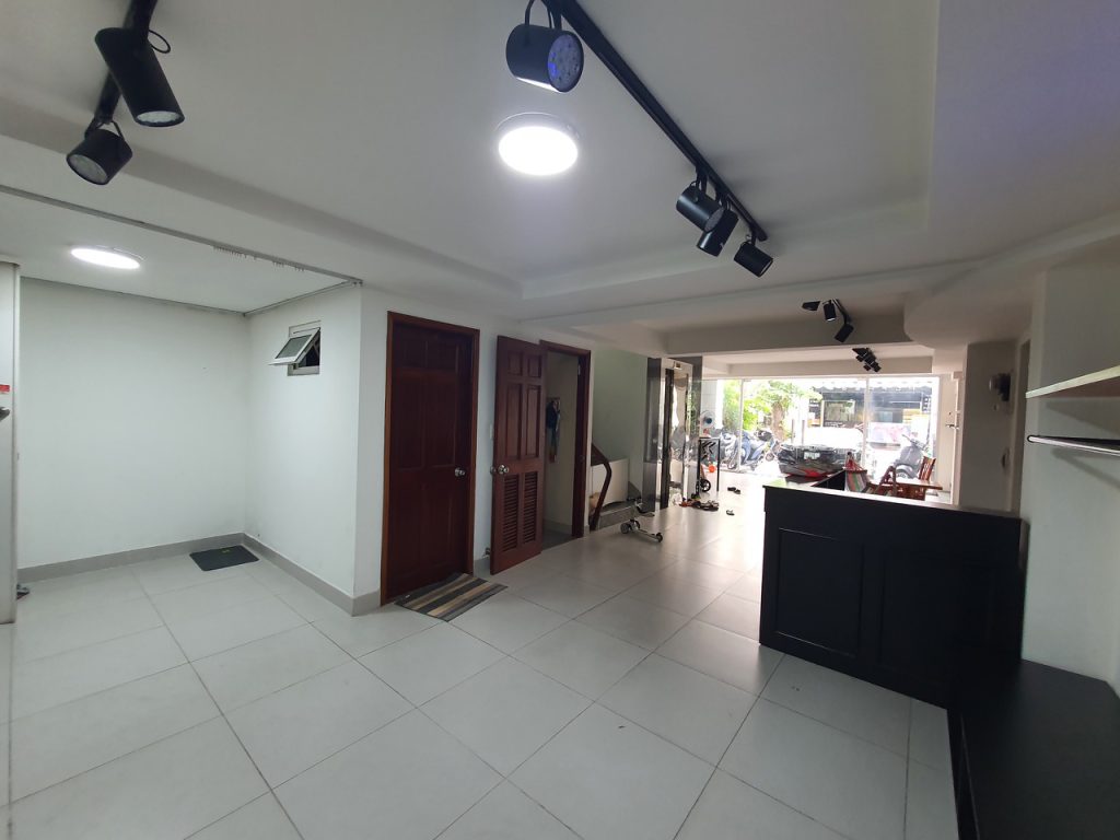 - Nhà trệt trống suốt , lửng, 3 lầu – 7 Phòng